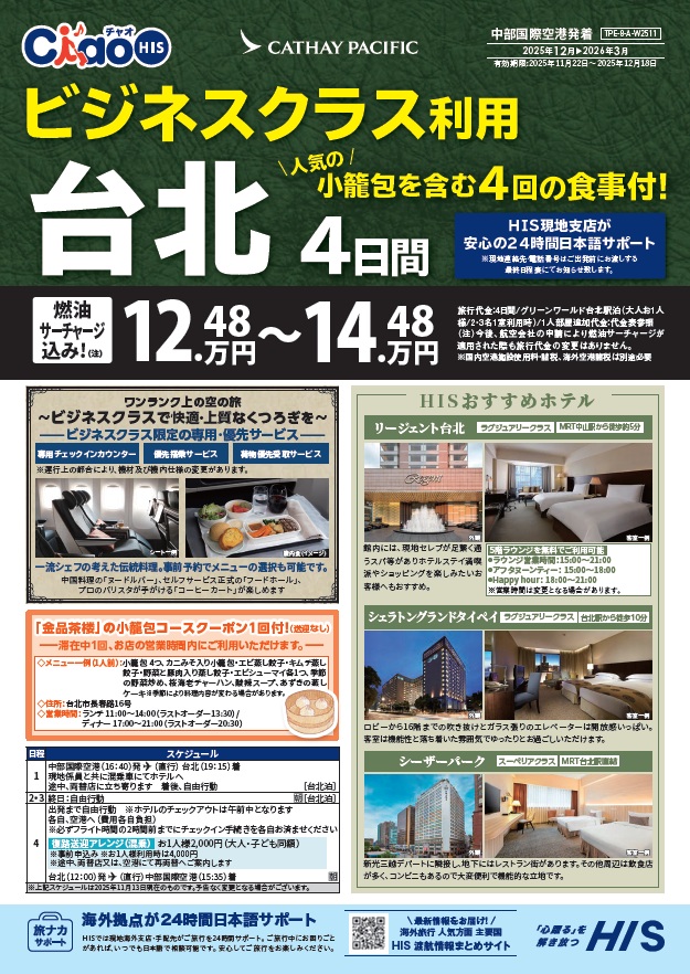 ビジネスクラスで行く!台北4日間