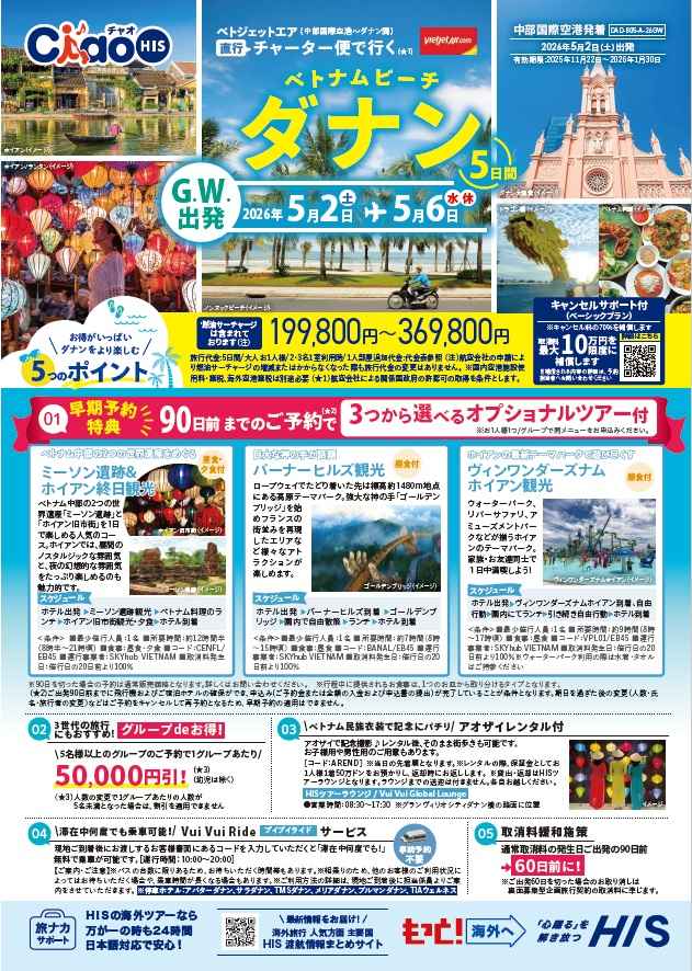 ついに!中部国際空港発着のダナン行き直行便が販売開始しました!