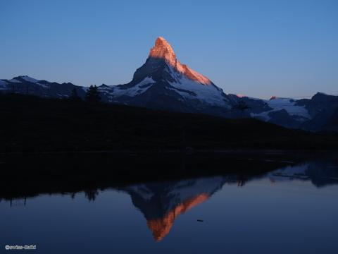 山頂が赤く染まるマッターホルンの朝焼けも見られるかも・・・heart