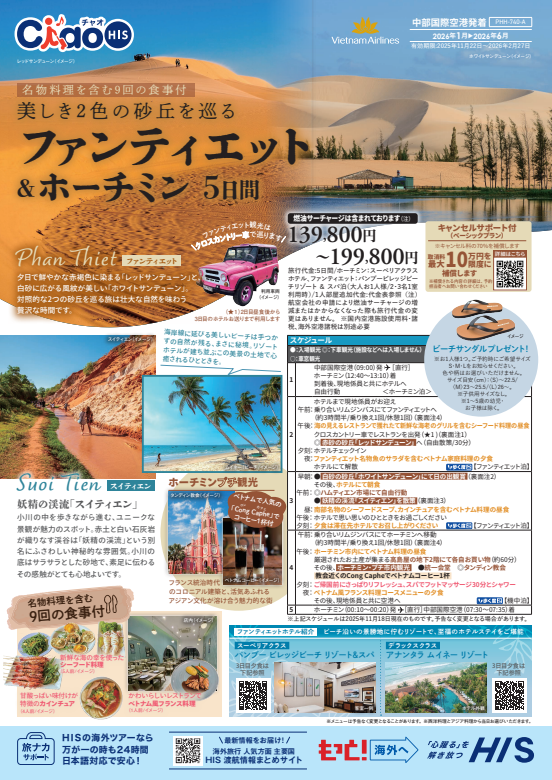 美しき2色の砂丘を巡る  ファンティエット&ホーチミン 5日間