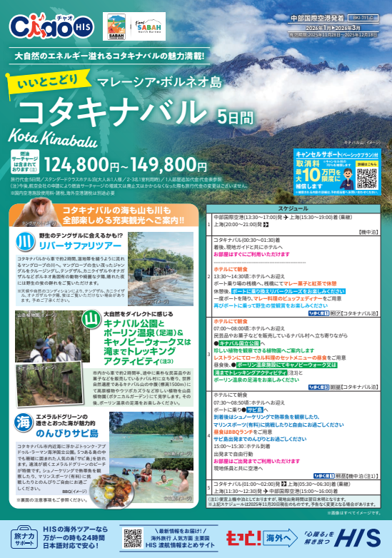 大自然のエネルギー溢れるコタキナバルの魅力満載!いいとこどりプラン