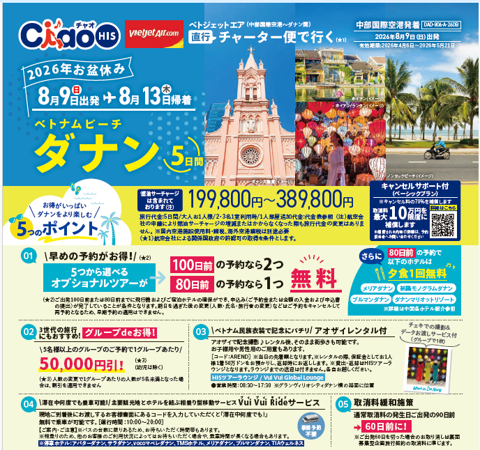 ダナンへ HIS直行チャーター便ツアー発売開始!!