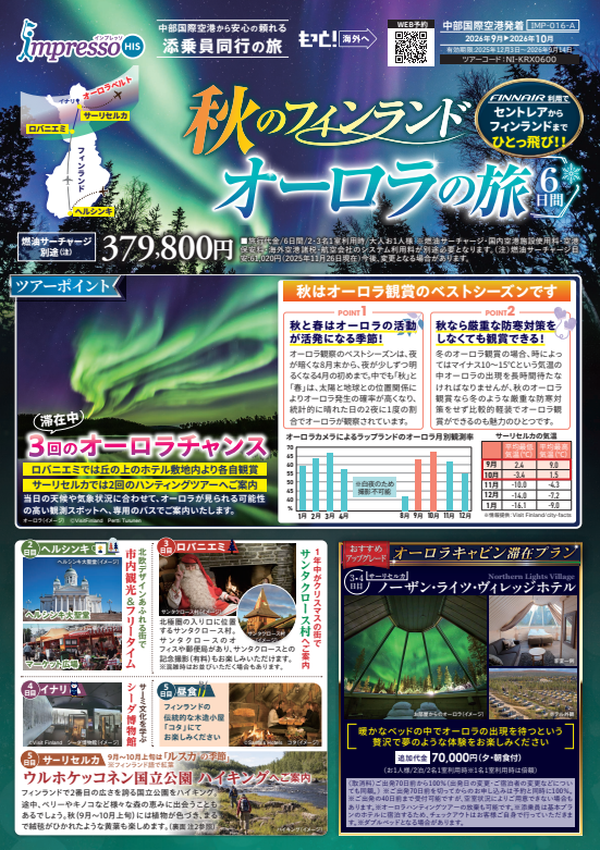 添乗員同行の旅!! 秋のフィンランド オーロラの旅6日間
