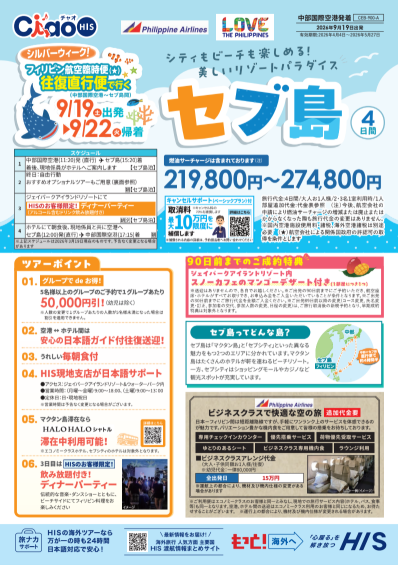シルバーウィーク出発★往復直行便!フィリピン航空臨時便で行くセブ島ツアー 2026/04/04
