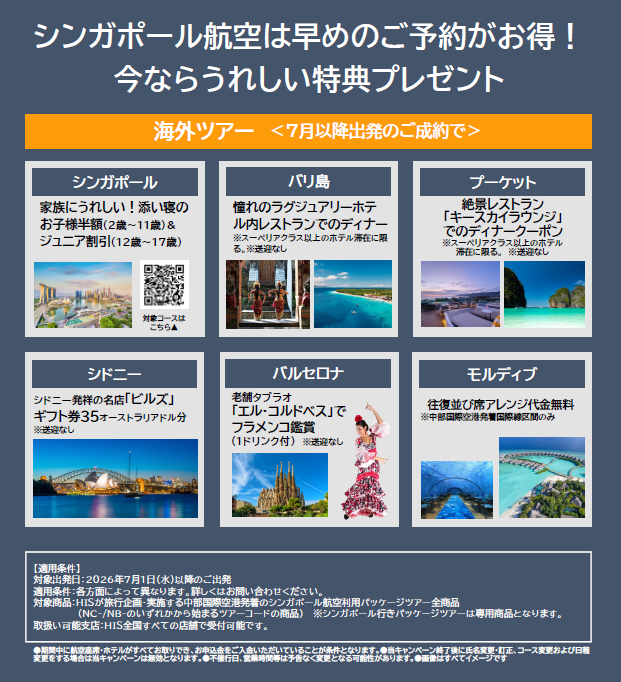中部国際空港発着シンガポール航空ご利用のお客様に