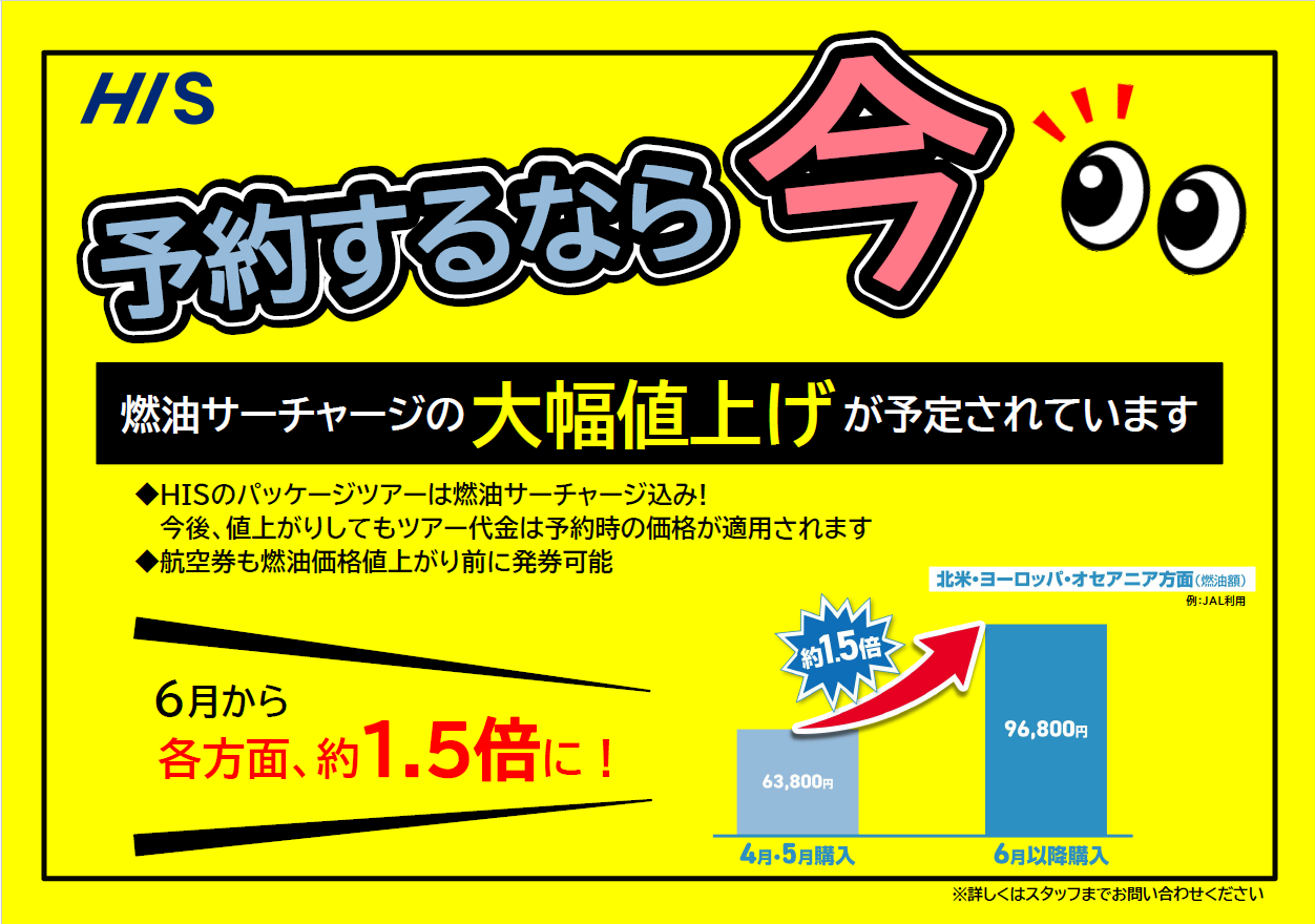 燃油サーチャージの値上がりが