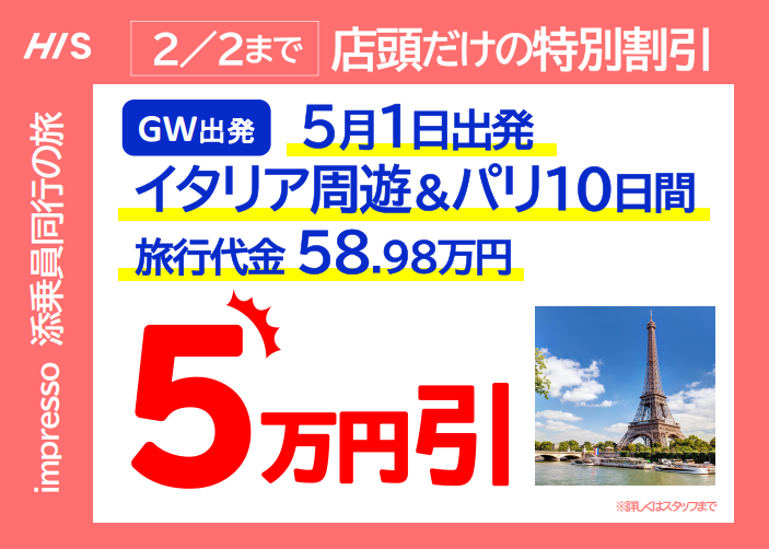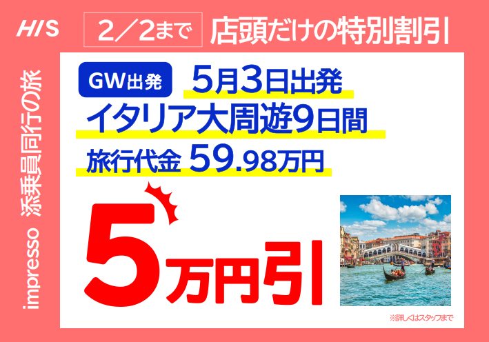 【GW出発】店舗販売限定で大幅割引!