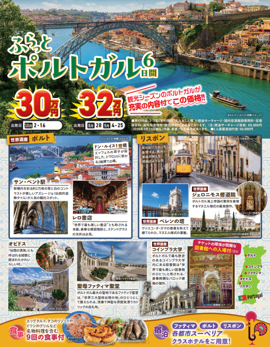 待望の新コース!★添乗員同行ポルトガル6日間販売開始です★