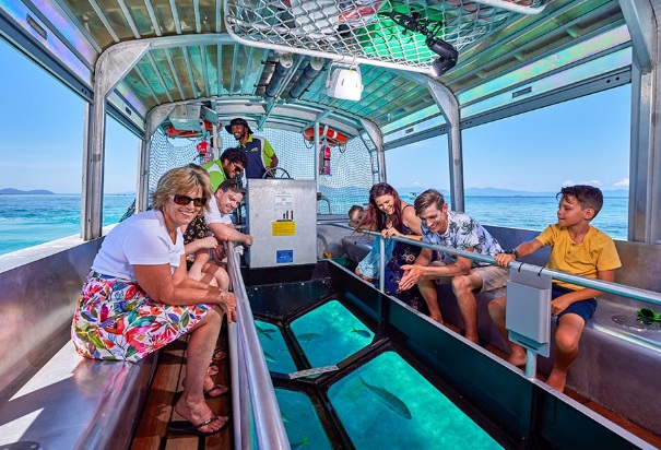 ②底が透明ガラスのグラスボトムボート乗船