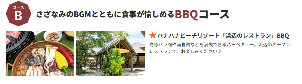 Bコース:さざなみのBGMとともに食事が愉しめるBBQコース