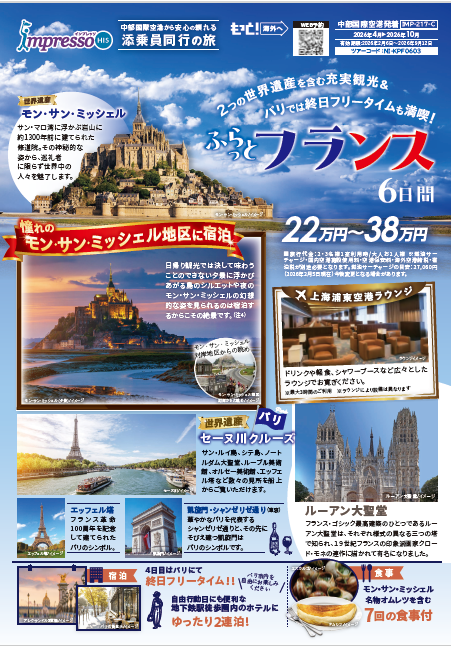 2/13 ★新聞掲載商品★フランス添乗員付きツアー