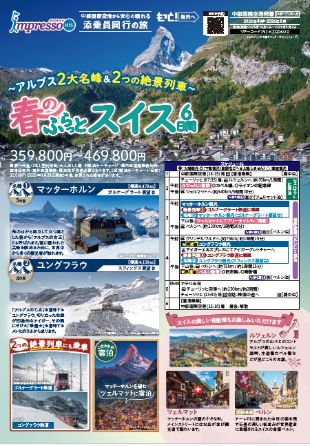 ♦添乗員付き♦ 春・夏のスイス 6・8日間