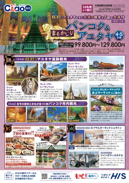 【おすすめ商品】まるかじりバンコク&アユタヤ 4・5日間