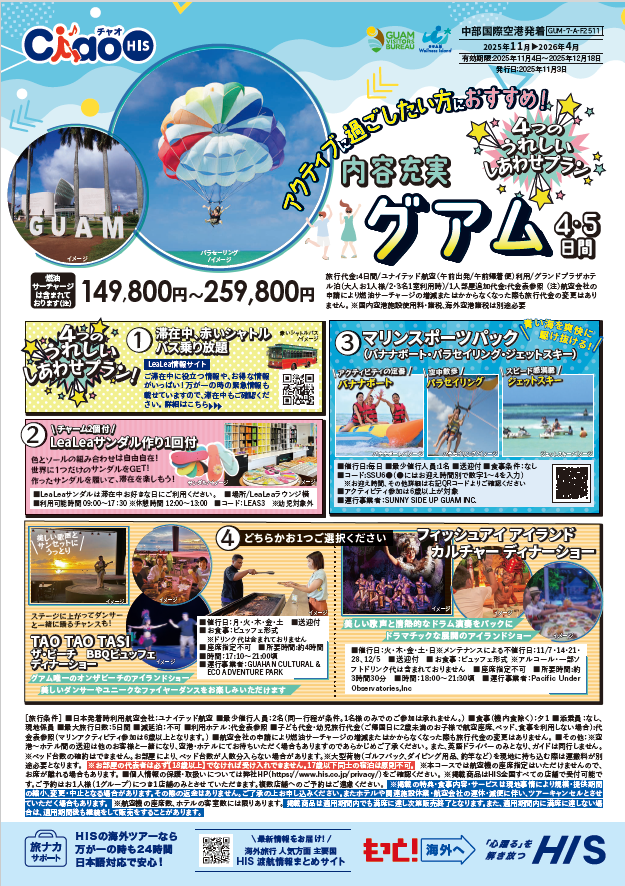 アクティブに楽しもう!グアム4・5日間