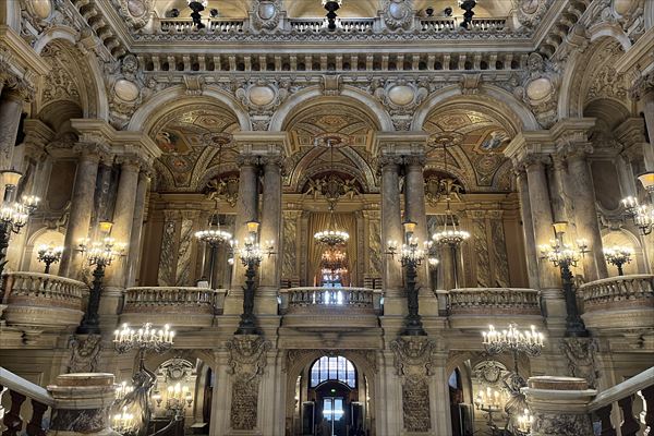 パリのシンボルのひとつとして知られるオペラ・ガルニエの内装は、歴史的な大階段や壮大な天井画が圧倒的な美しさです。