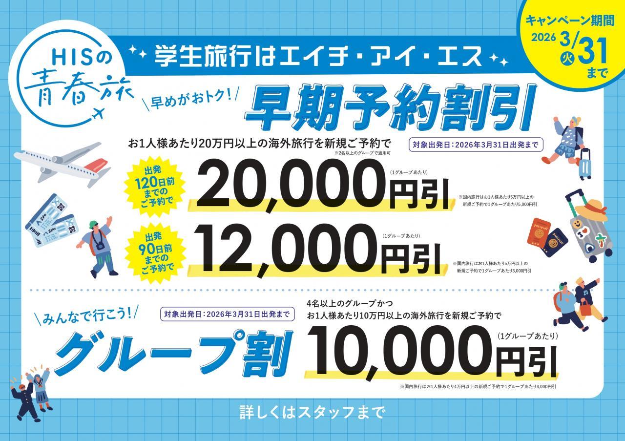 ★早めの予約がお得★学生キャンペーン開催中!! 2025/11/01