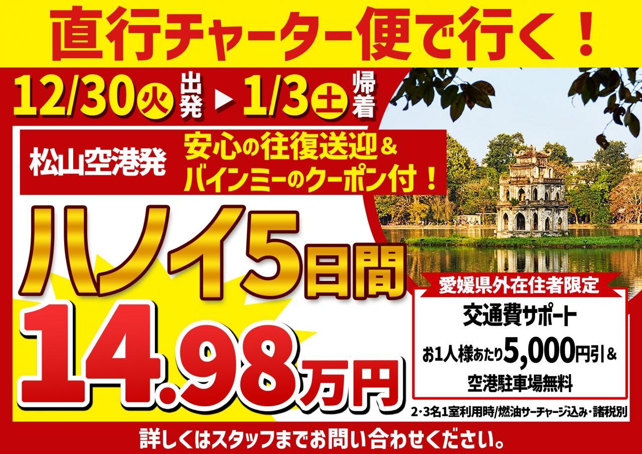 【年末年始チャーター】松山空港ハノイ チャーター商品発売開始 2025/08/21