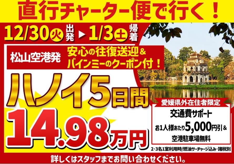【年末年始チャーター】松山空港ハノイ チャーター商品発売開始 2025/08/22