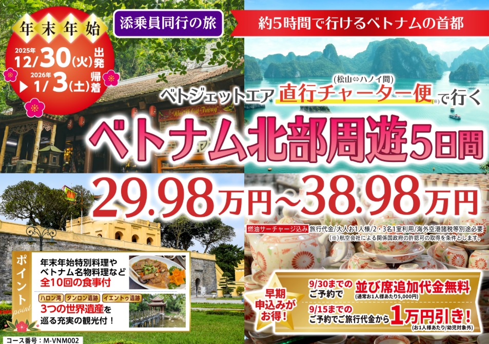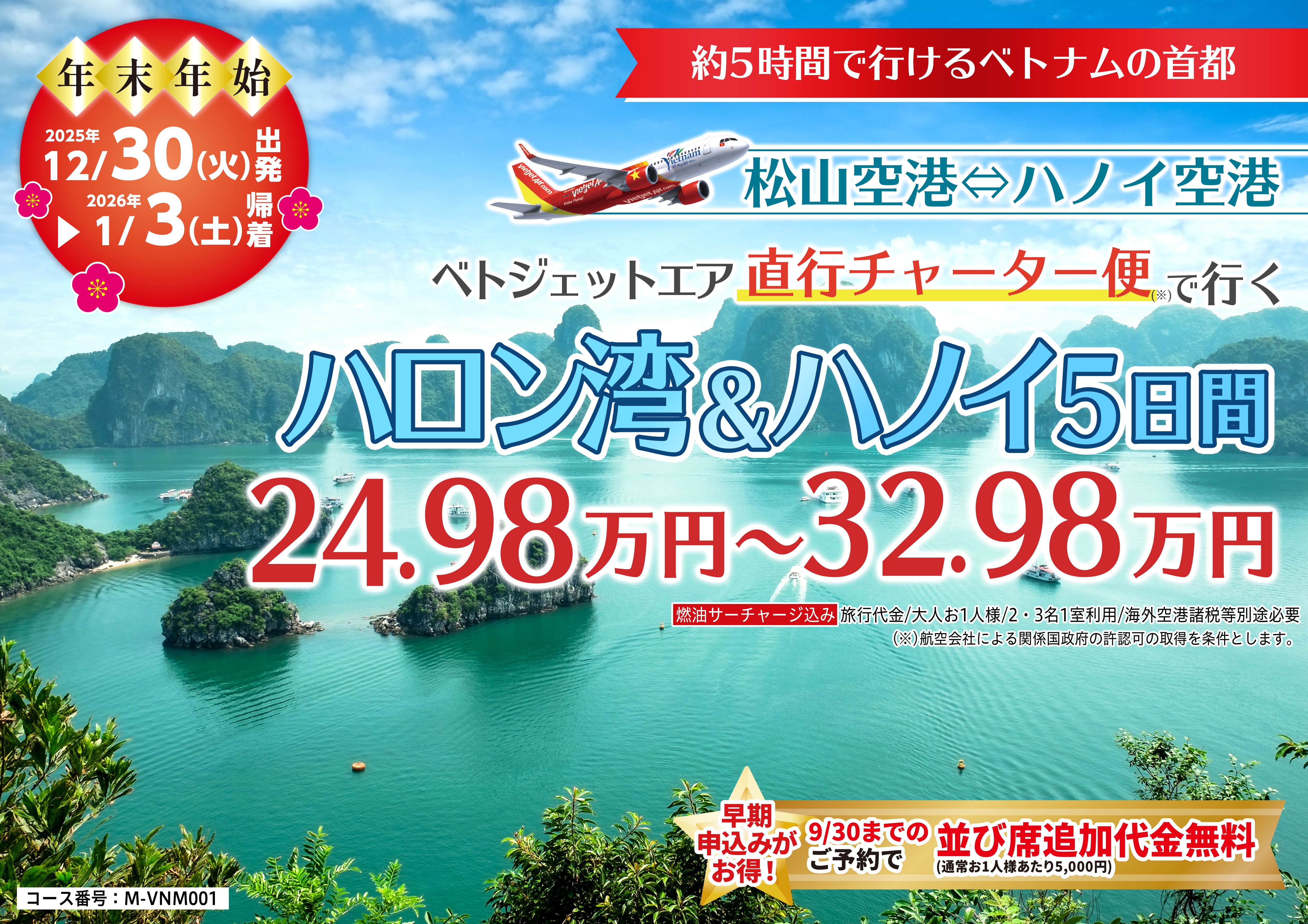 【年末年始チャーター】松山空港ハノイ チャーター商品発売開始
