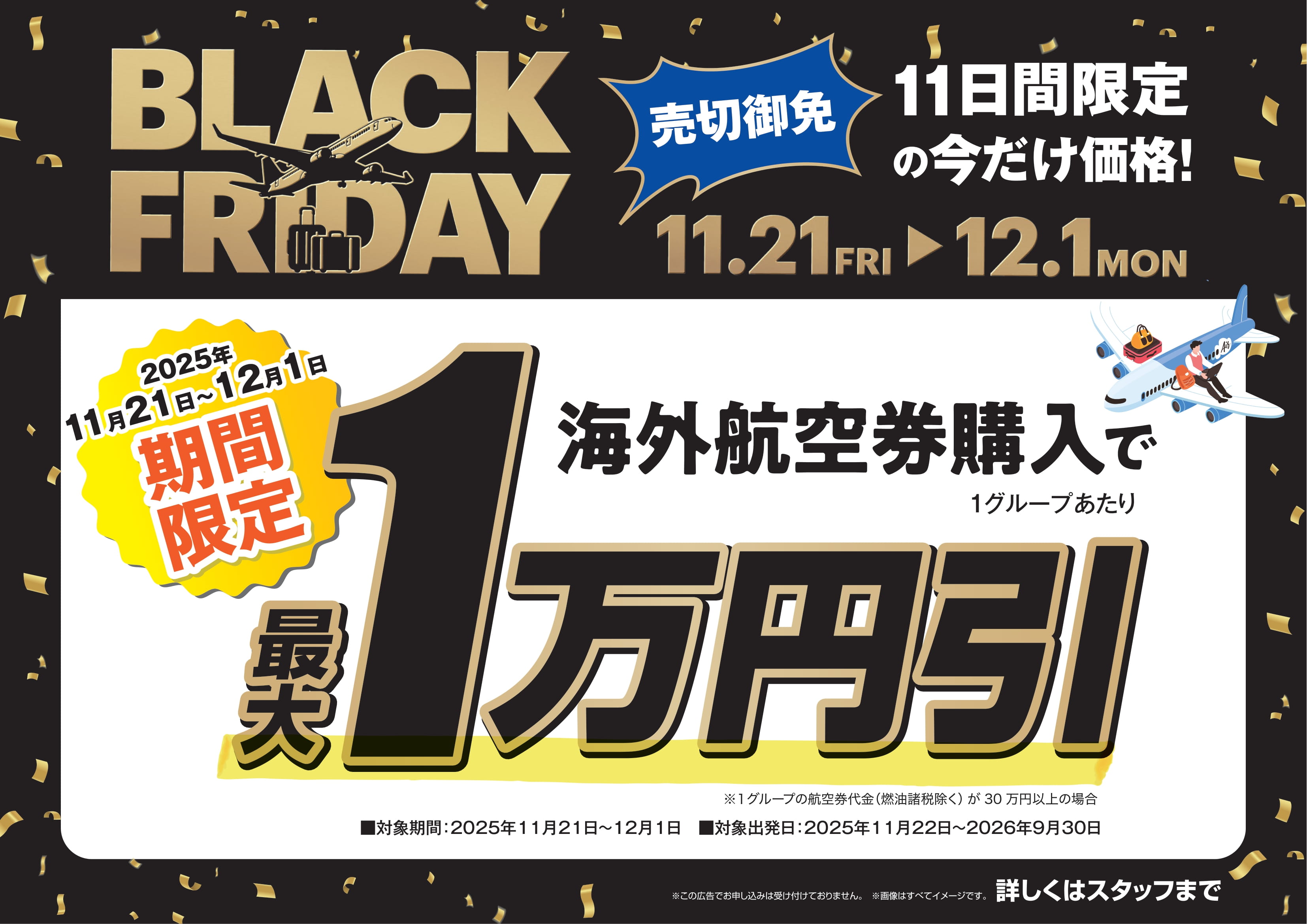 売切御免の今だけ価格!HISの今だけお得な11日間、BLACK FRIDAY