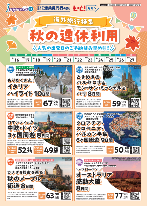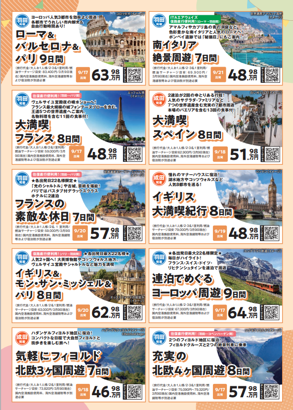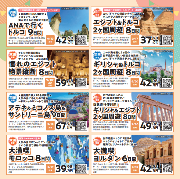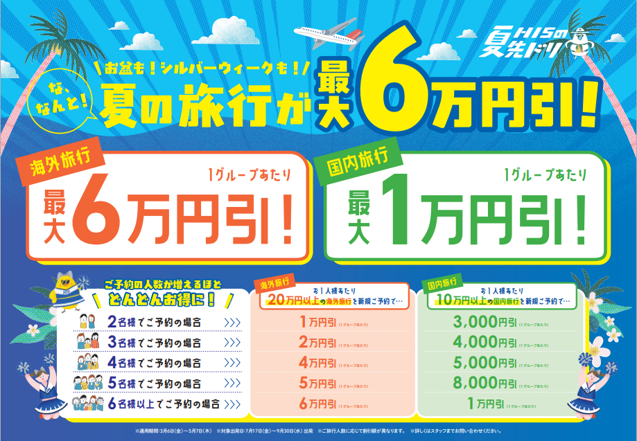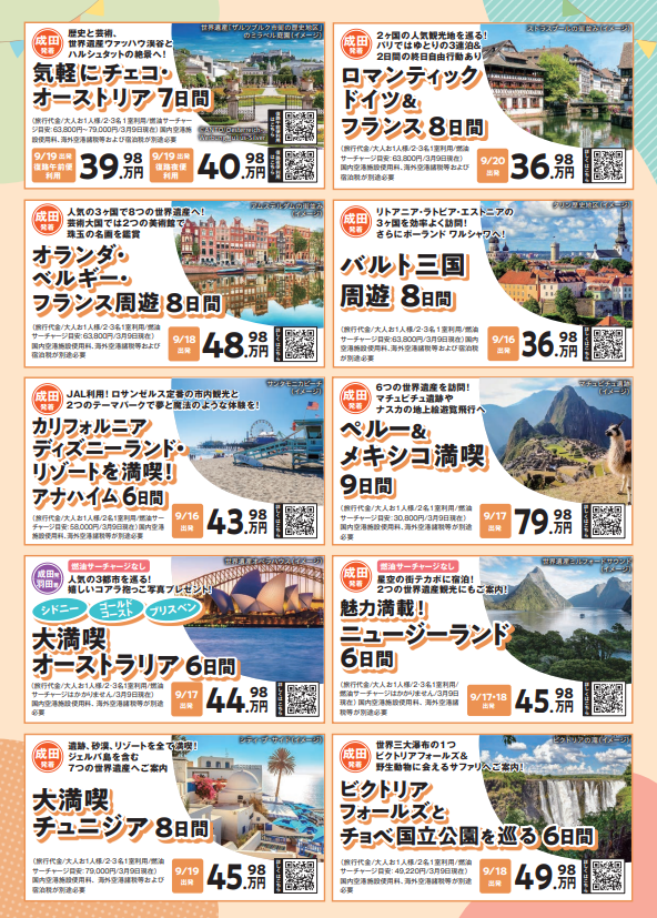 海外旅行、国内旅行(航空機利用ツアーのみ)は