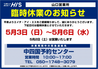 HIS山口営業所:TEL:050-1743-4679