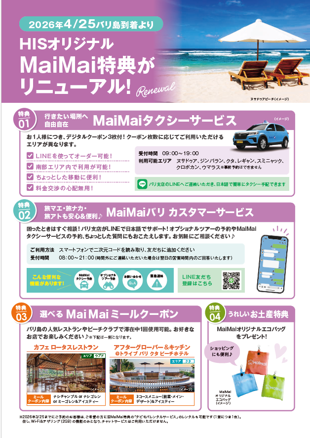 >>バリ島MaiMai特典リニューアル<<