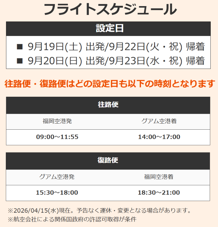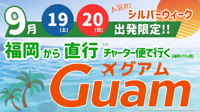 【福岡発】シルバーウィーク限定・グアム直行チャーター便商品のご案内!