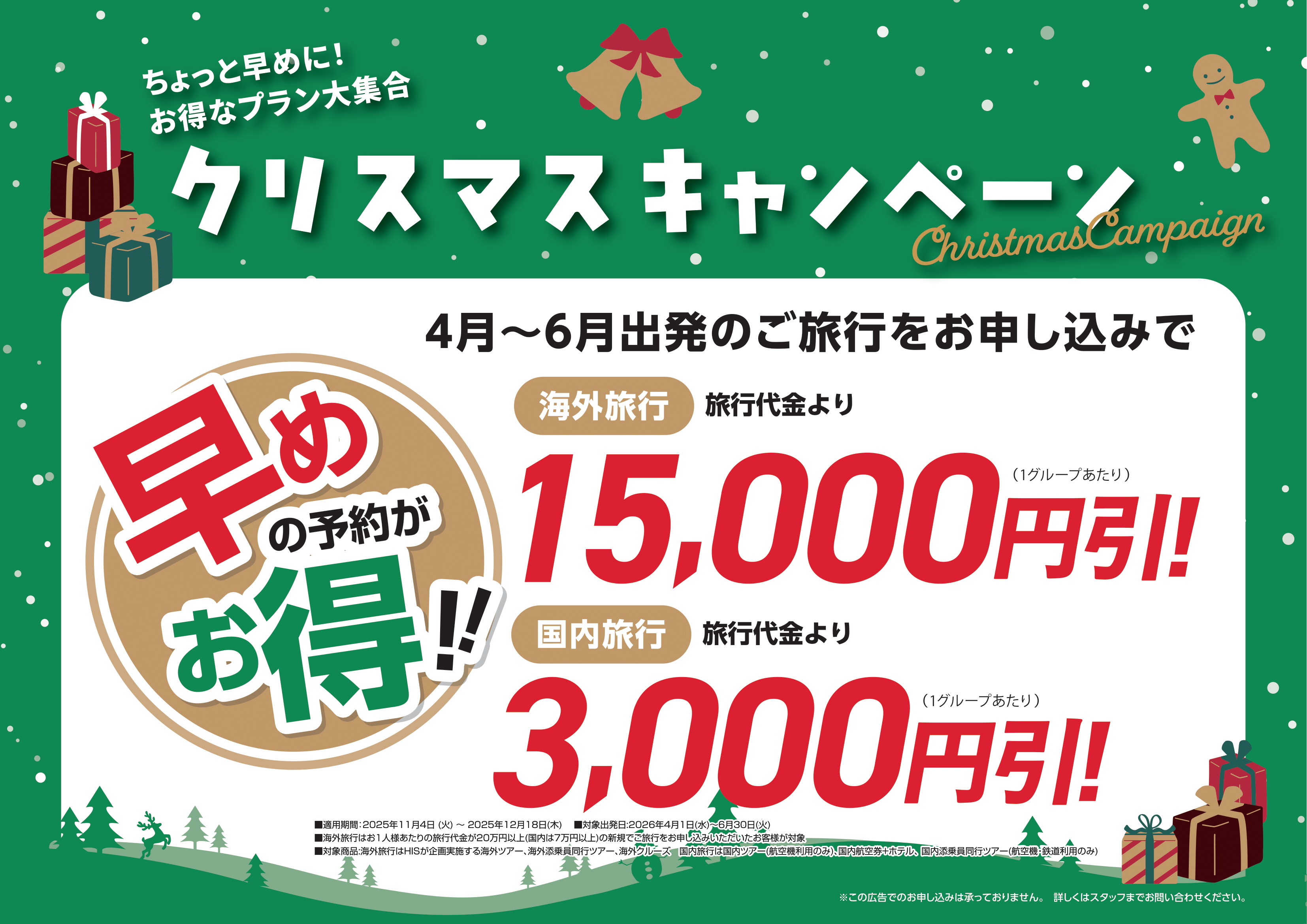 ※2025年12月27日(土)~2026年1月4日(日)出発は除く