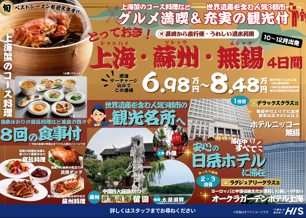 【オススメ】長崎発着上海行ツアー空席ございます! 2025/10/02