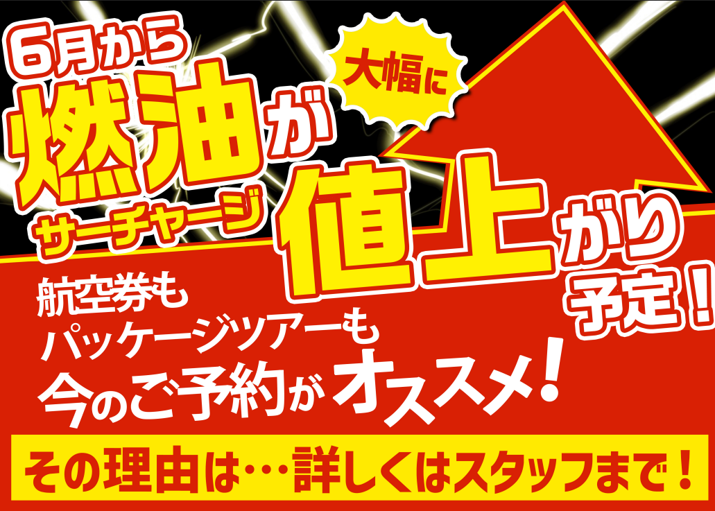 燃油サーチャージ値上がりのお知らせ
