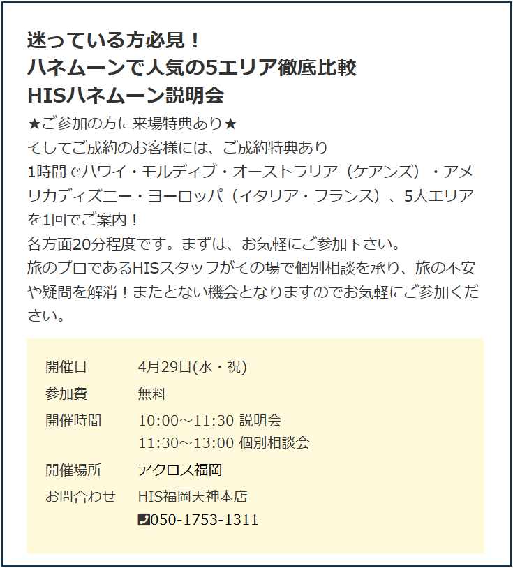 <HISハネムーン説明会>