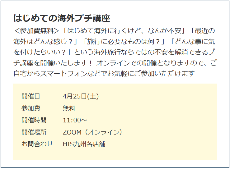 <HISはじめての海外プチ講座>