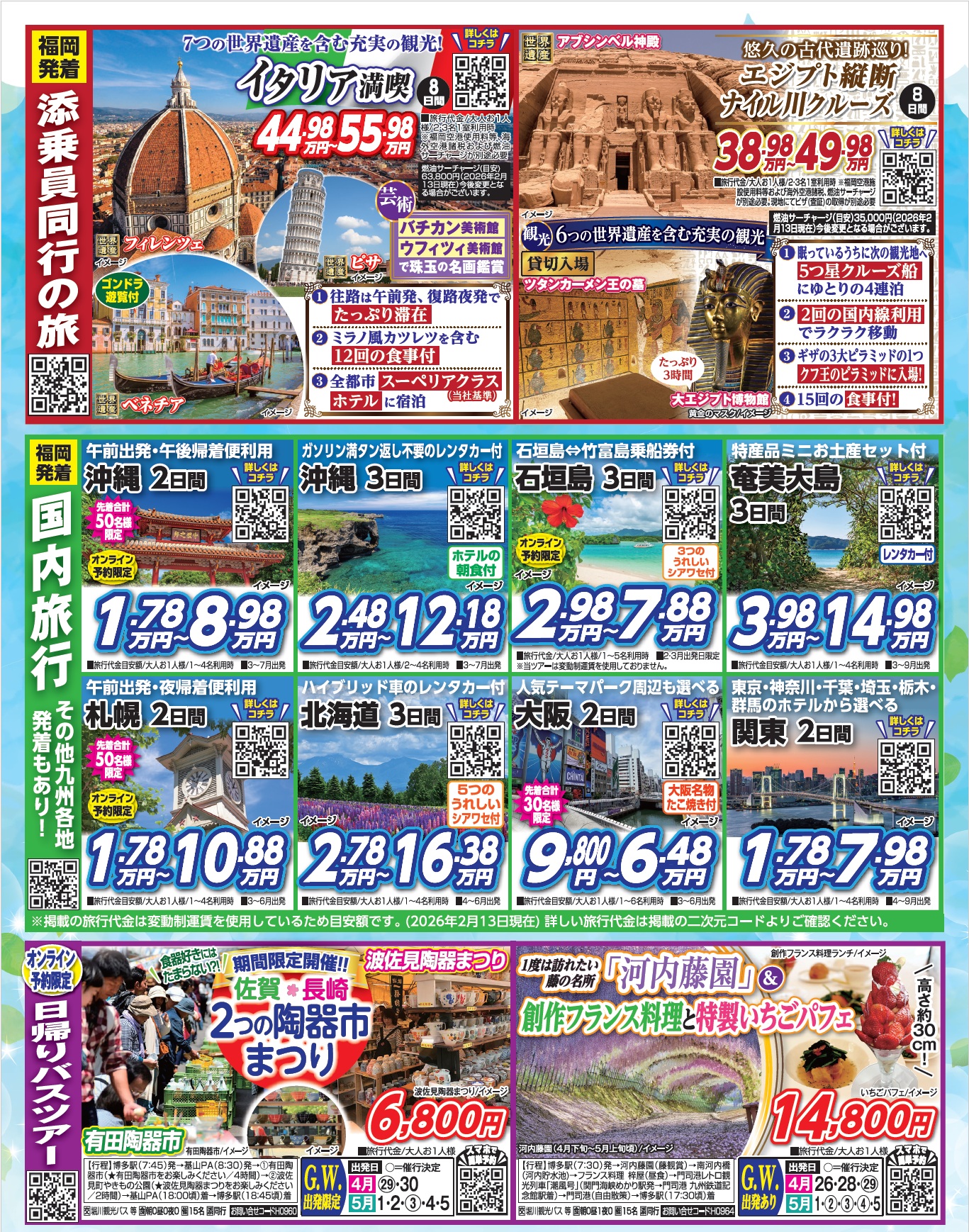 ♪おすすめ商品♪福岡から添乗員同行!イタリア満喫8都市周遊8日間〈11~3月発〉 2026/02/13