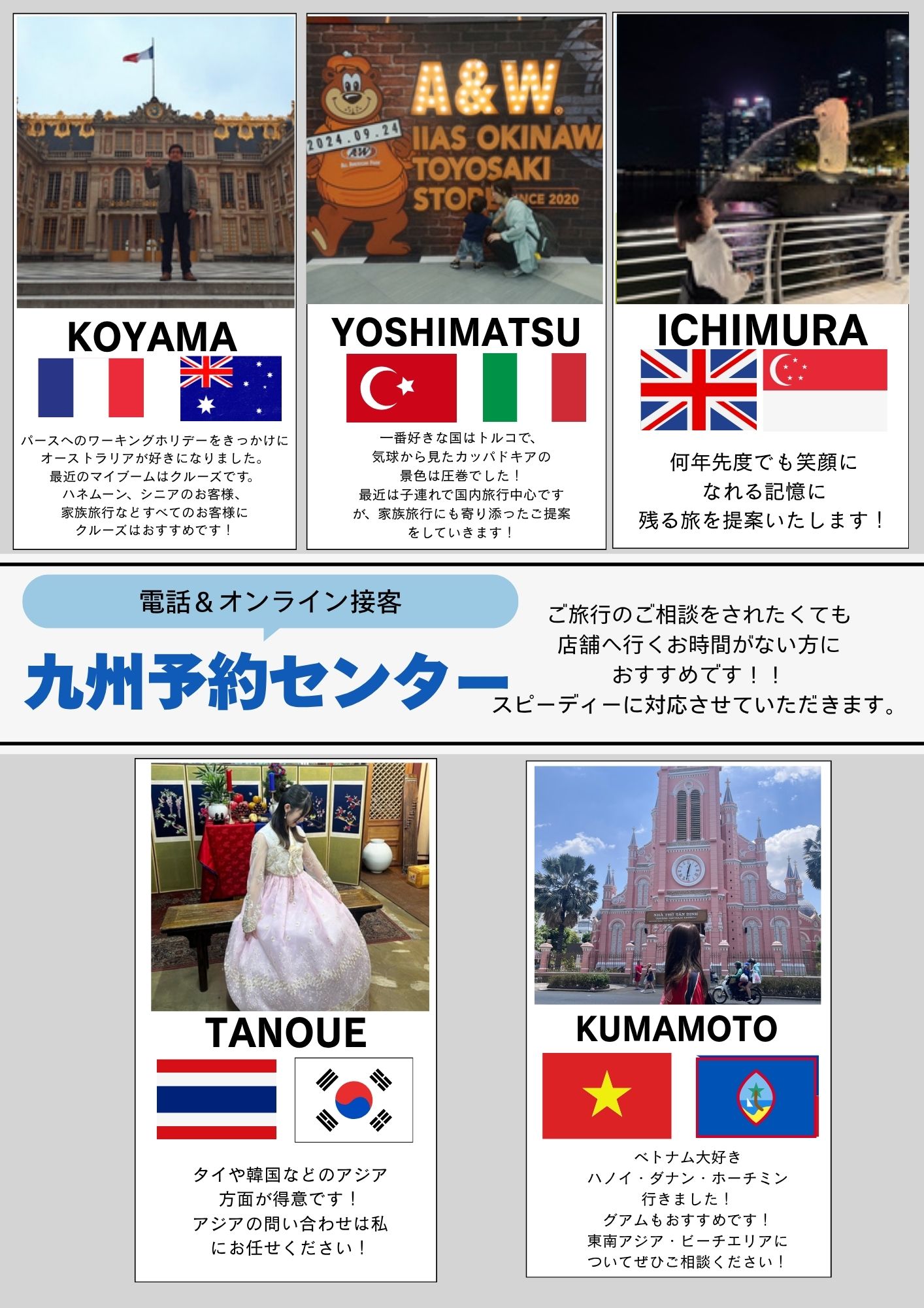 【スタッフ指名相談予約】 旅行歴さまざまなスタッフにぜひお任せください!
