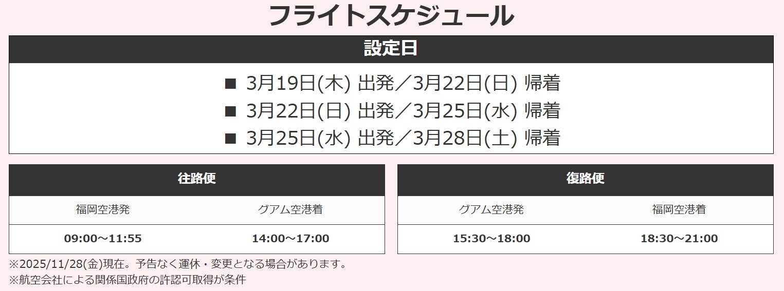 春休み出発!福岡から直行チャーター便で行くグアム4日間 2025/12/02