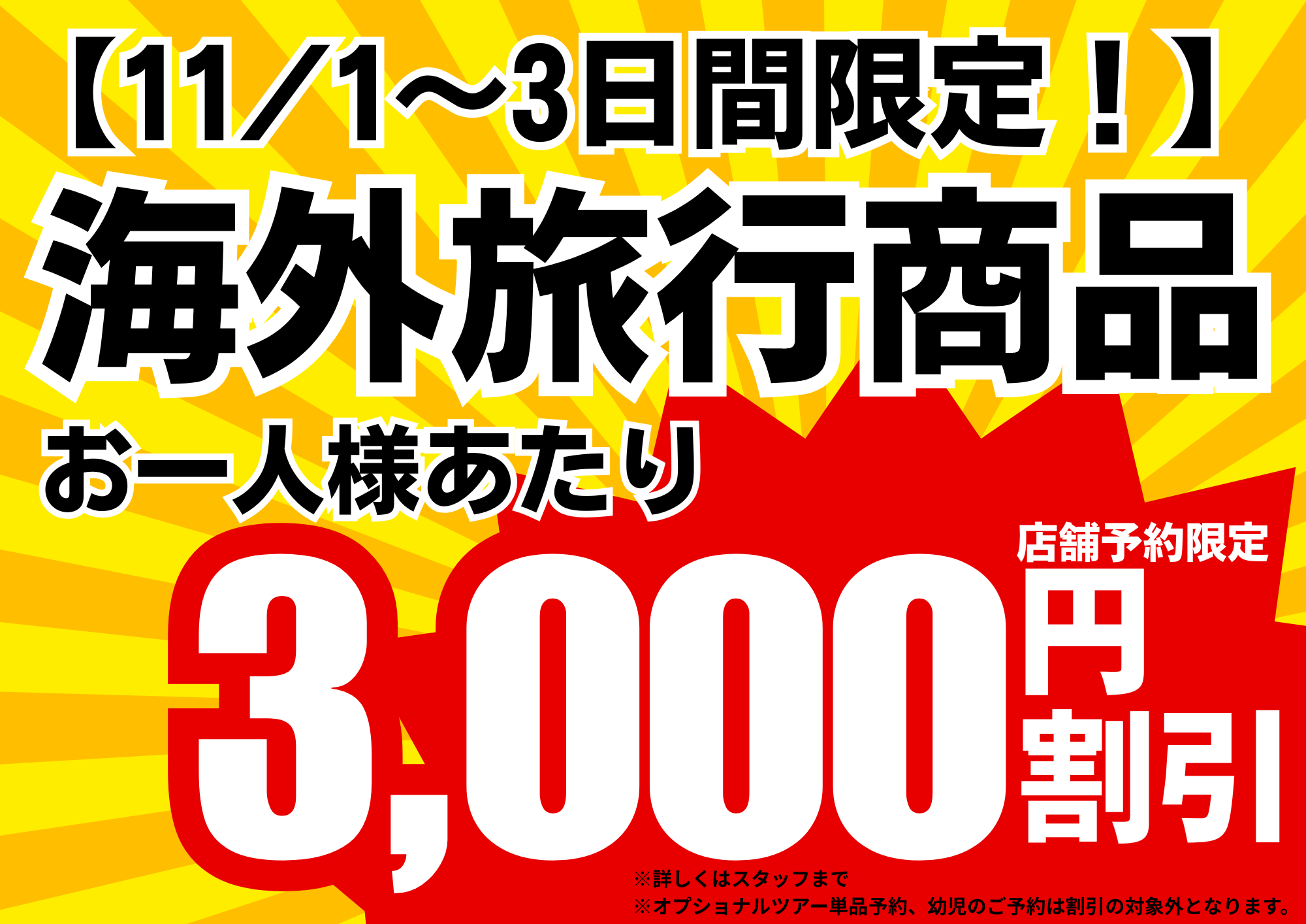 ~海外旅行 全商品どれでもOK!お一人様 3,000円割引!~