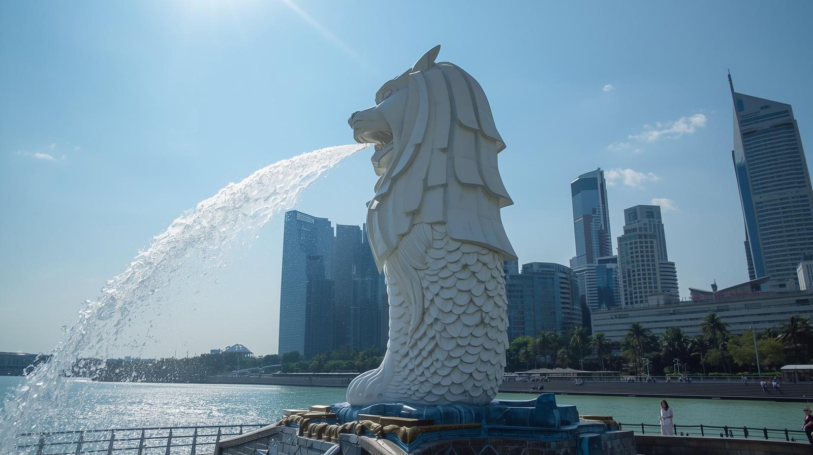 マーライオンについてですが、Merlionは、Mermaid(人魚)+Lion(ライオン)からできた言葉で上半身がライオン、下半身が人魚の姿をしているシンガポールの神話上の生き物でシンガポールのシンボルとされています。